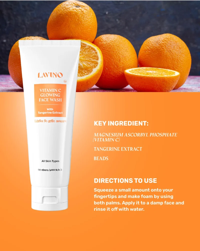 Lavino Vitamin C Glowing Facewash is formulated with active Vitamin C, which is a powerful antioxidant that helps to brighten, nourish, and protect your skin while giving it a deep and thorough cleanse. Say hello to healthy and radiant skin with every wash.